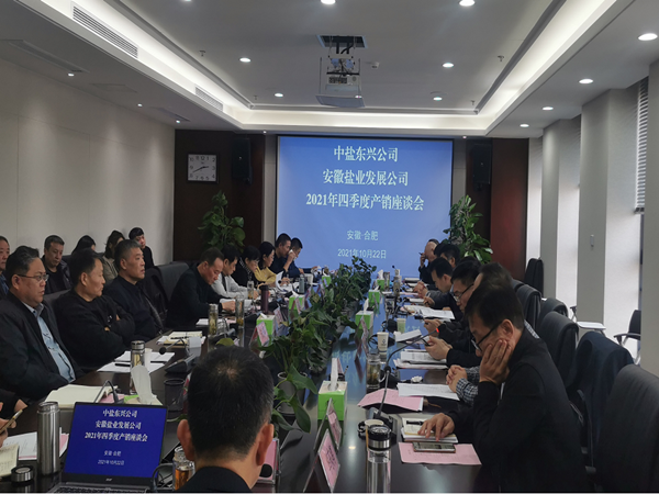 10月22日-23日,安徽鹽業(yè)發(fā)展公司2021年四季度經(jīng)營(yíng)工作推進(jìn)會(huì)暨產(chǎn)銷座談會(huì)在合肥召開(kāi)。省鹽業(yè)集團(tuán)公司黨委委員、副總經(jīng)理王奇,中鹽東興營(yíng)銷中心總經(jīng)理王朝忠,發(fā)展公司、各市公司及生產(chǎn)企業(yè)相關(guān)人員參加會(huì)議。