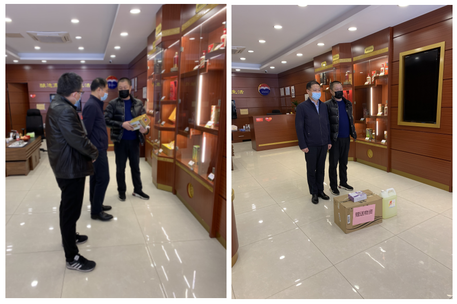 在認真聽取了安鹽商貿公司負責人關于疫情防控措施落實和復工復產后推進情況匯報后,宋華龍實地查看公司防疫物資儲備及辦公場所防疫落實情況,對公司防疫工作作出肯定,并代表瑤海區區委向我公司捐贈口罩800只及消毒液、體溫儀等物資若干。