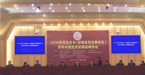 2017年2月25日,由安徽省社會科學院、安徽省經濟和信息化委員會、安徽省商務廳、安徽省工商行政管理局、安徽省人民政府法制辦公室、安徽省人民政府金融工作辦公室、安徽省信用協(xié)會和安徽省信用研究中心聯(lián)合舉辦的《2016信用藍皮書——安徽信用發(fā)展報告》發(fā)布暨信用安徽高峰論壇在省人大會議中心召開。